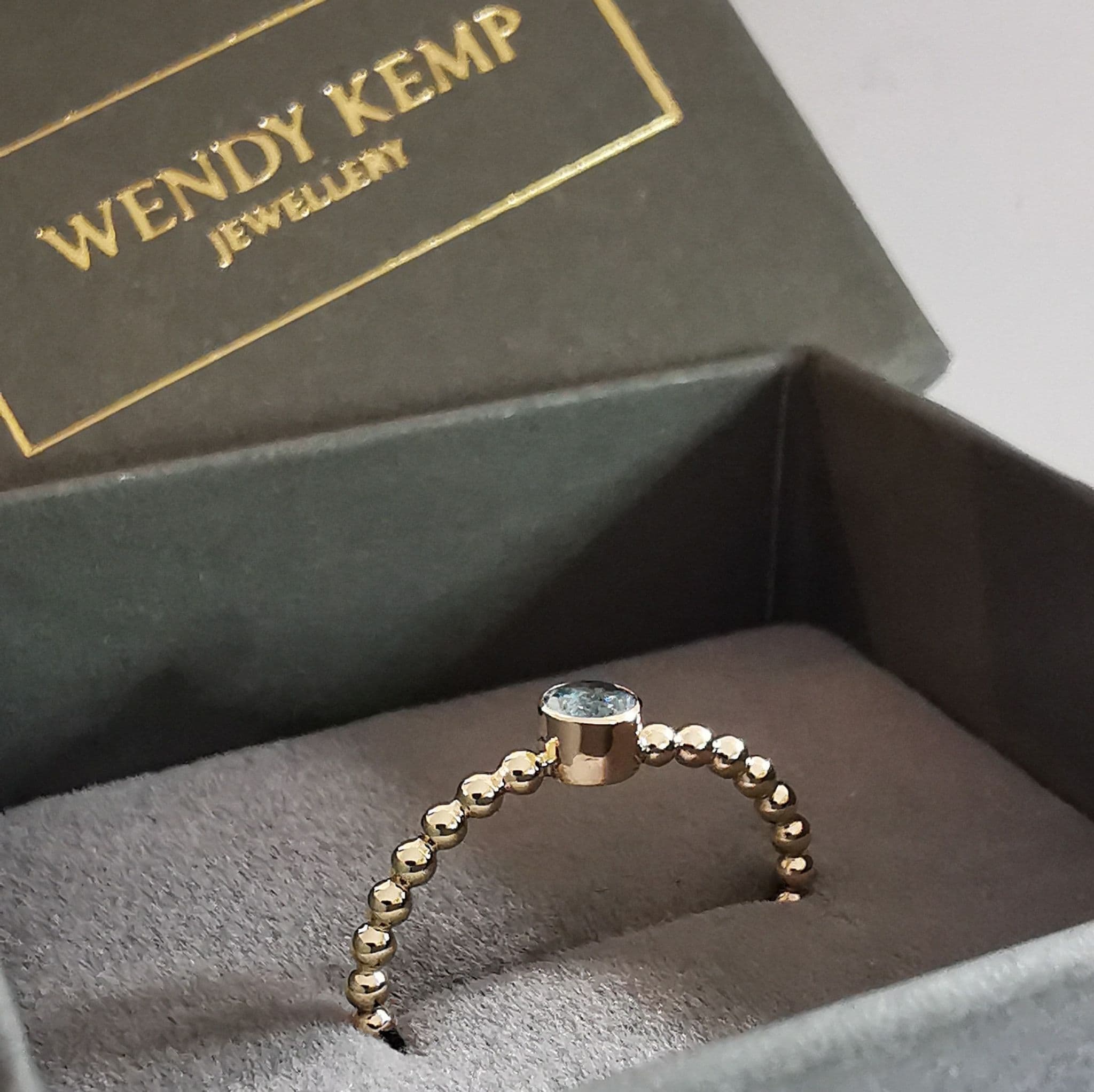 This 2mm bobble ring is made from solid 9ct gold with a natural 4mm gemstone.