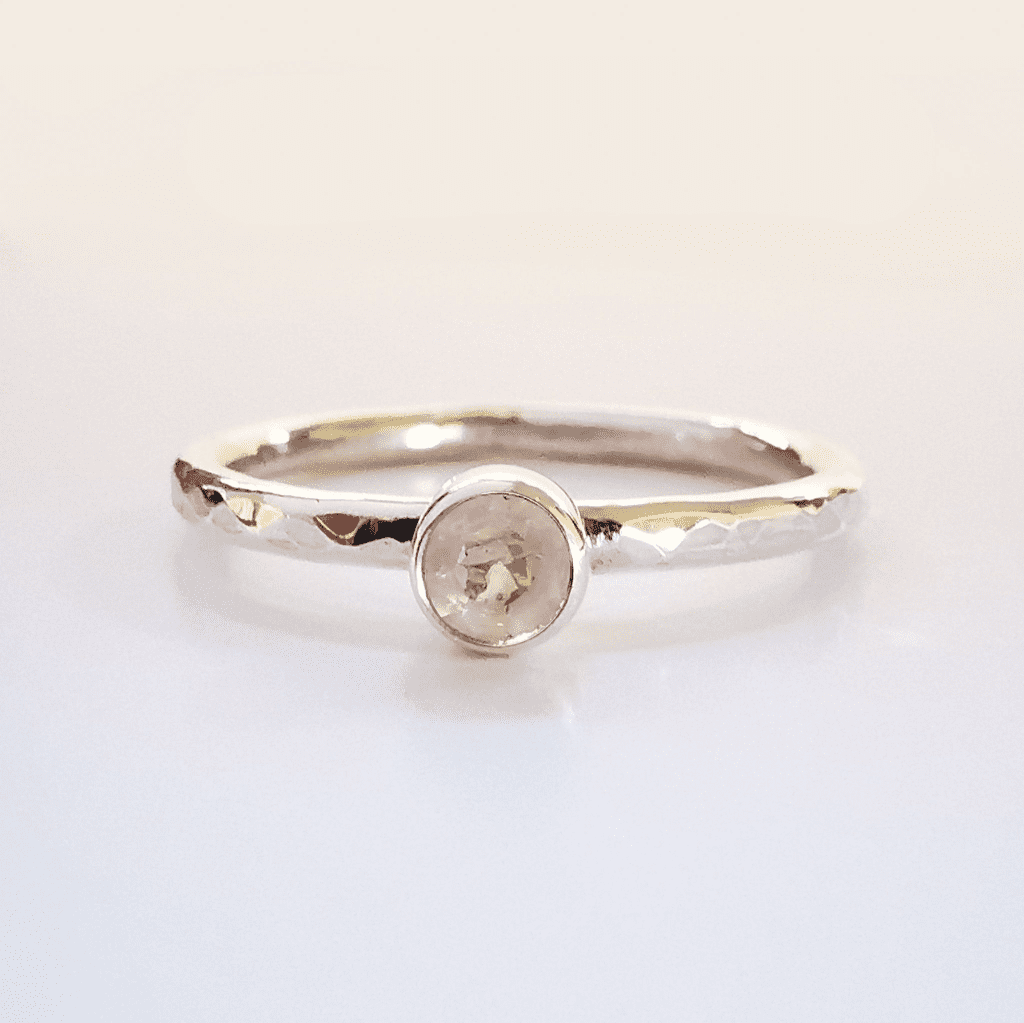This memorial stacking ring is made with solid sterling silver with a natural 4mm gemstone.