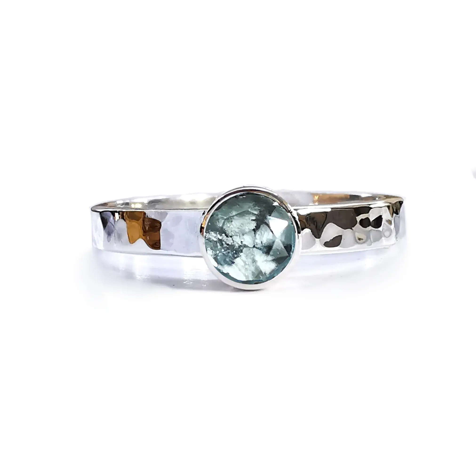 This memorial stacking ring is made with a solid sterling silver 3.2mm textured band with a natural 5mm gemstone.