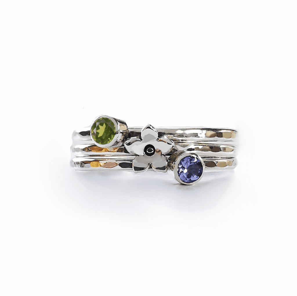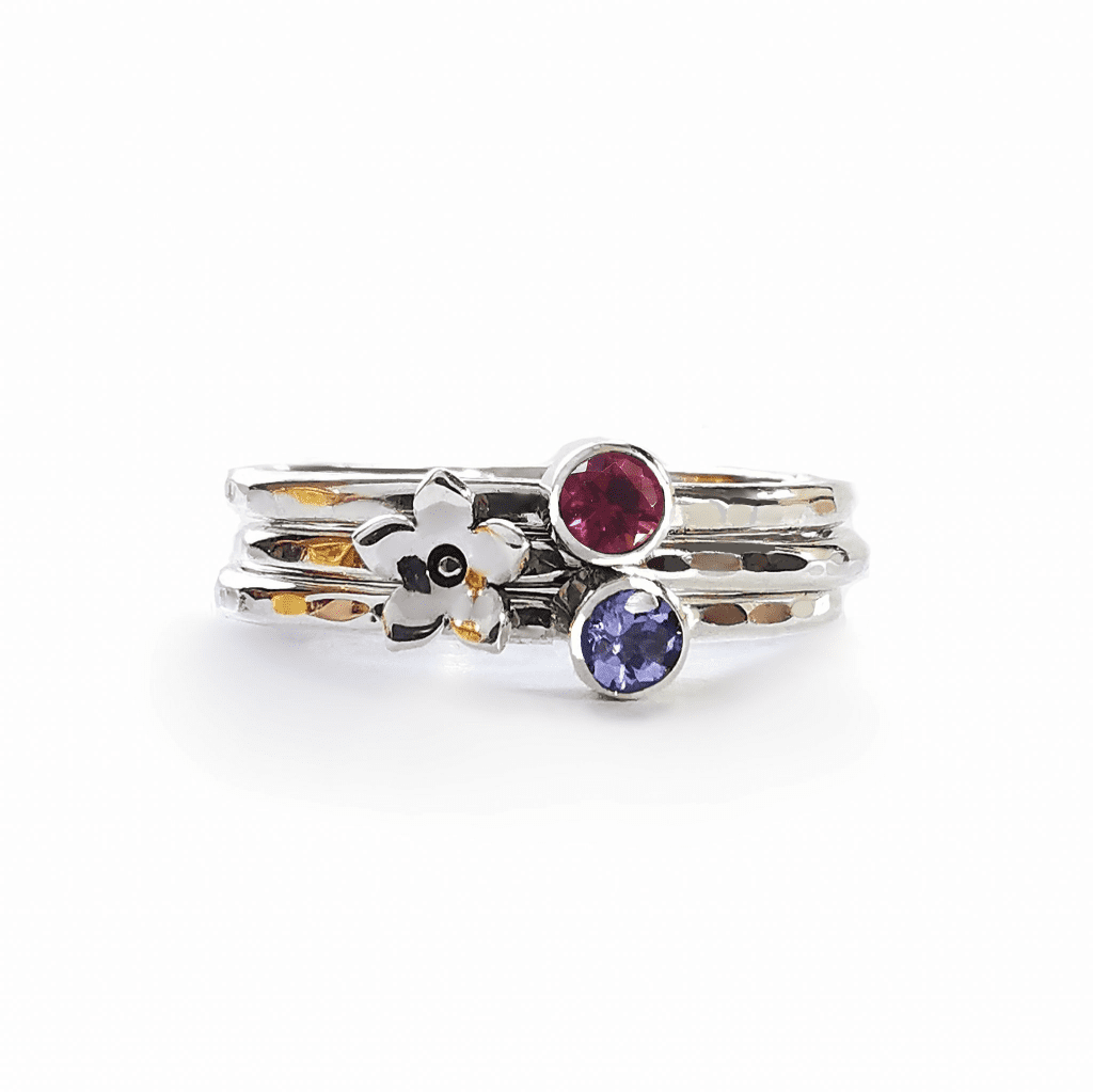 This stacking ring is made with 2 x 3mm gemstone rings which has the ash/hair hidden underneath the natural gemstone.