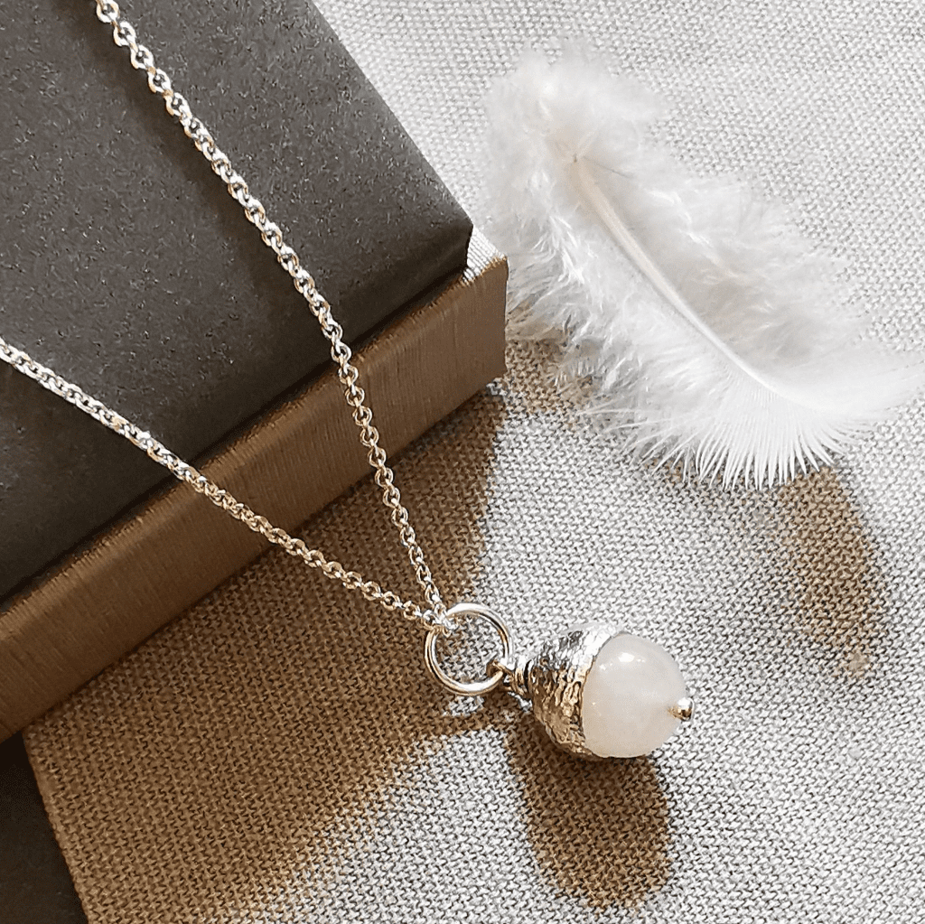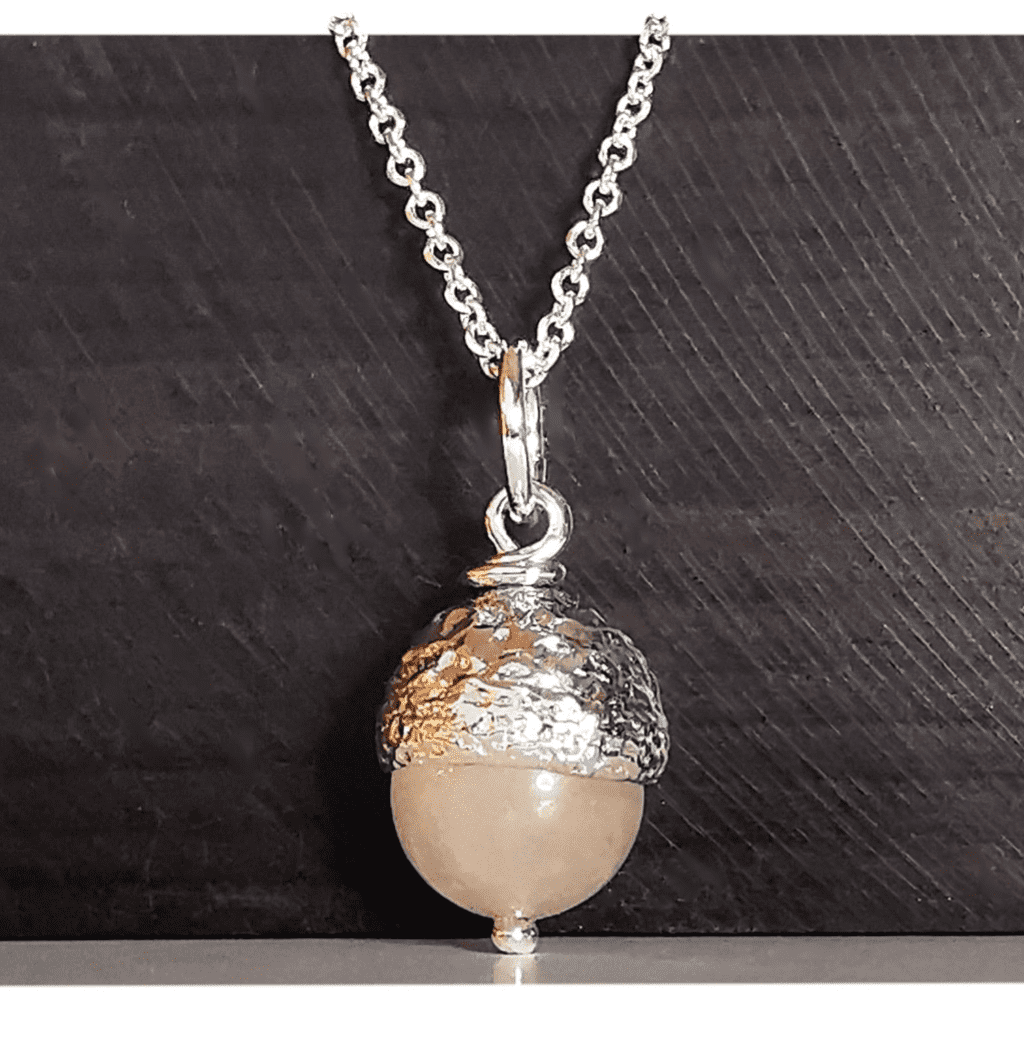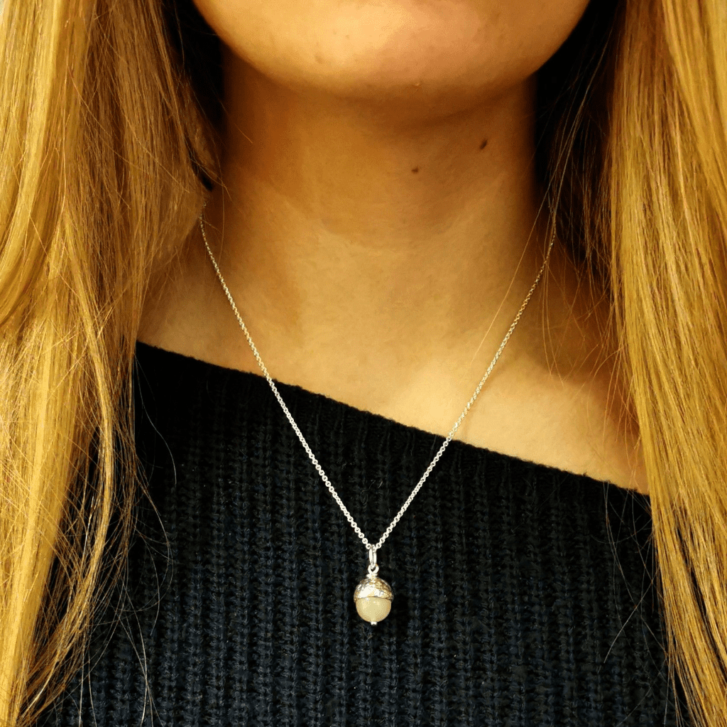 Ash/Hair is placed inside the gemstone in this acorn design so that only the wearer needs know it is there.