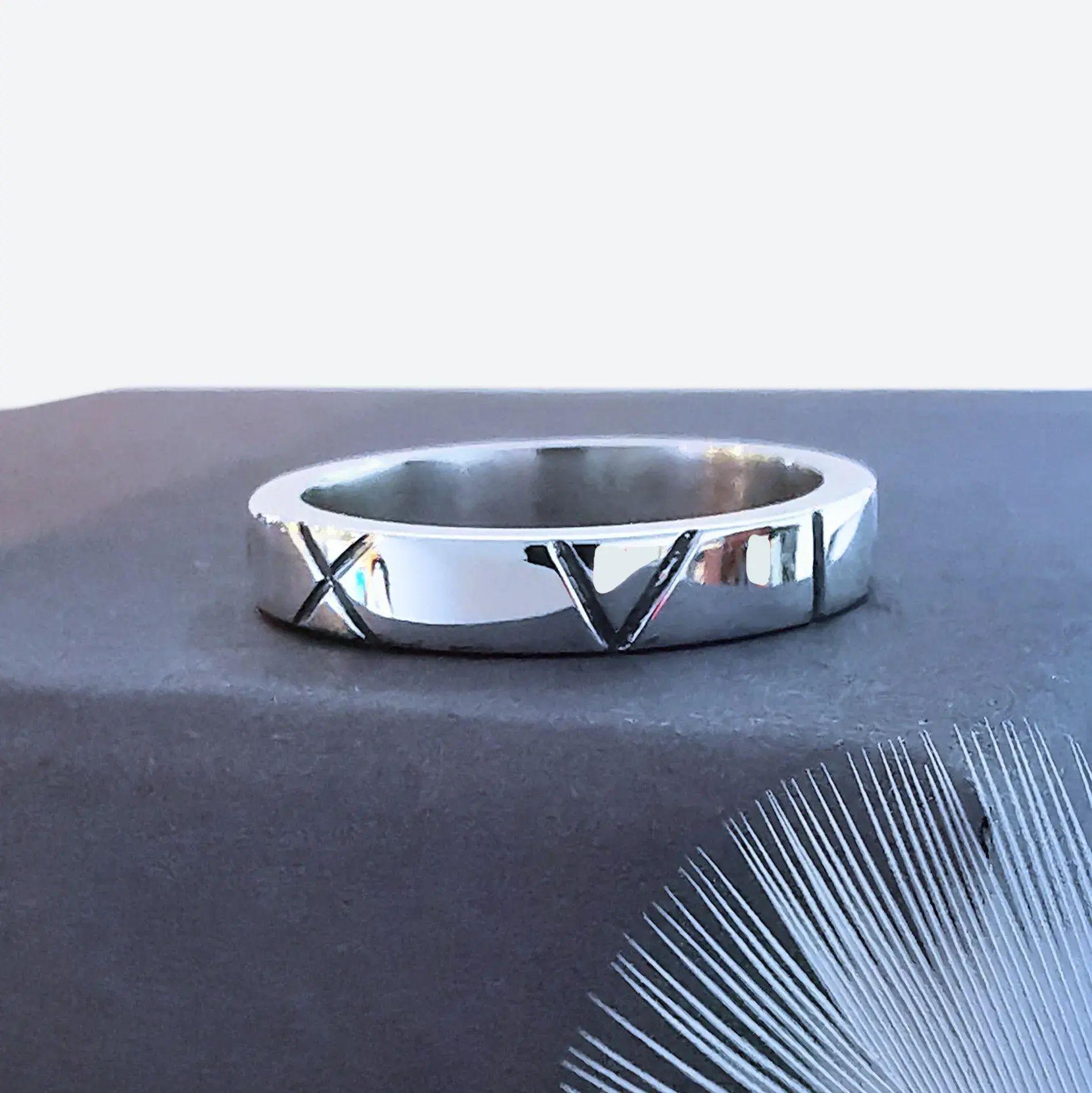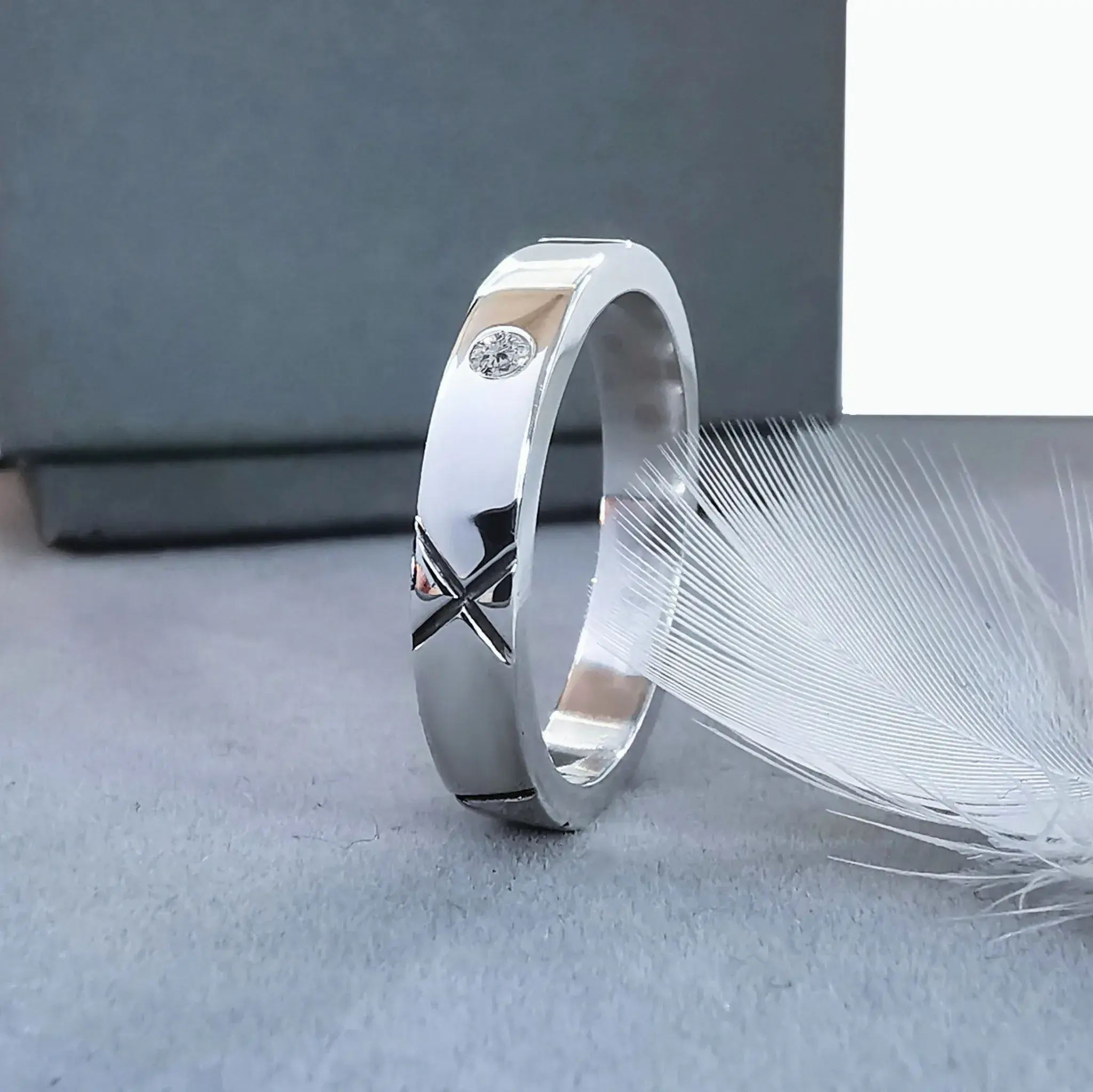 4mm wide solid sterling silver, lab grown 2mm diamond.