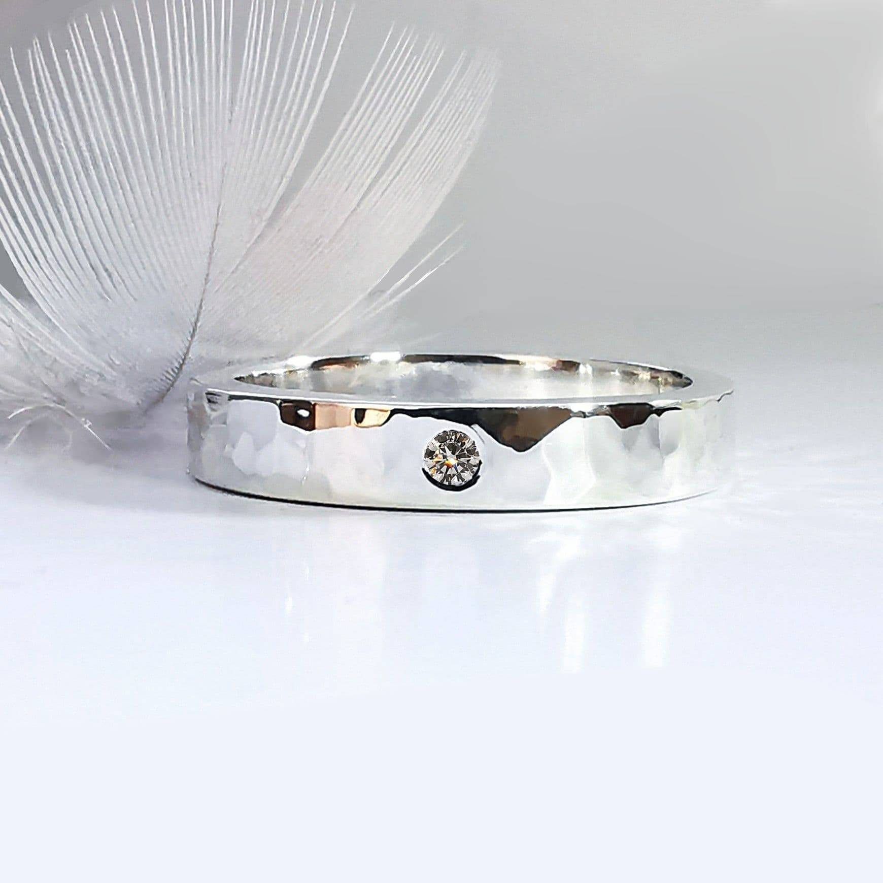 4mm wide solid sterling silver, lab grown 2mm diamond.